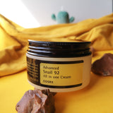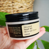 Advanced Snail 92% Cream from COSRX is formulated with 92% Snail Secretion Filtrate (Mucin).